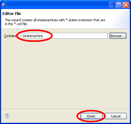 As soon as you have selected a container and a File name, the "Finish" button will become enabled (Fig.10: New Statemachine 2).