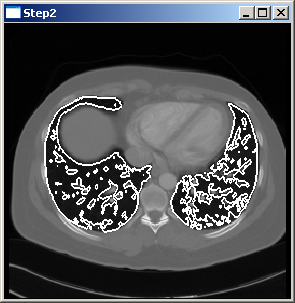 In order to obtain the result the program has to be executed using the image file mitk/Core/Code/Testing/Data/Pic3D.pic.gz and the surface file mitk/Modules/MITKExt/Testing/Data/lungs.vtk.