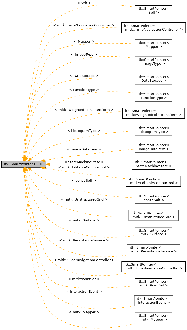 Inheritance diagram for itk::SmartPointer< T >: